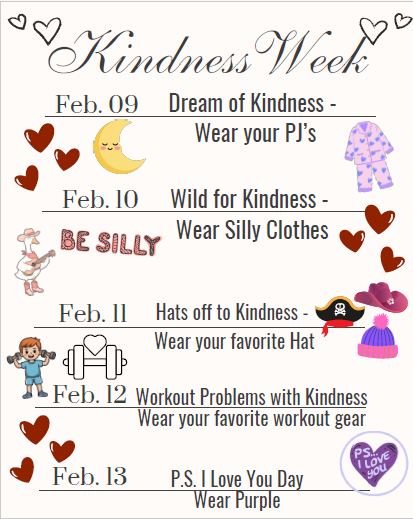 Lynwood is showing how kind we are with a Kindness Spirit Week 2/9/26-2/13/26!